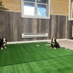 When pups are 4 weeks old and eating a diet of soft puppy food, they are moved out to our heated/air conditioned puppy suites. They have access to an inside temperature controlled area as well as a large outdoor covered playpen. We play music in all the puppy suites in order to expose them to different sounds. Pups learn how to use a dog door to go potty outside from a young age and feedback from our happy customers has indicated that potty training is a breeze! Our pups are handled daily and are well socialized, they have a jungle gym of toys in their pens, and they are exposed to various different environments until they go to their forever home. Our pups easily transition from our home to yours and we are happy to brag about that fact through our customer testimonials, please take a tour of those pages!